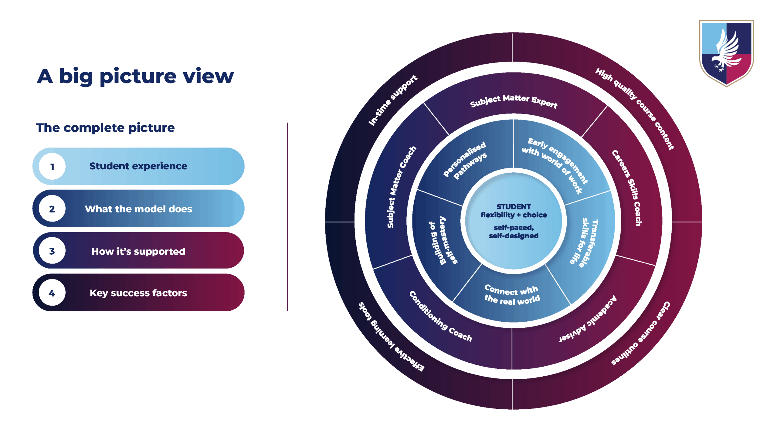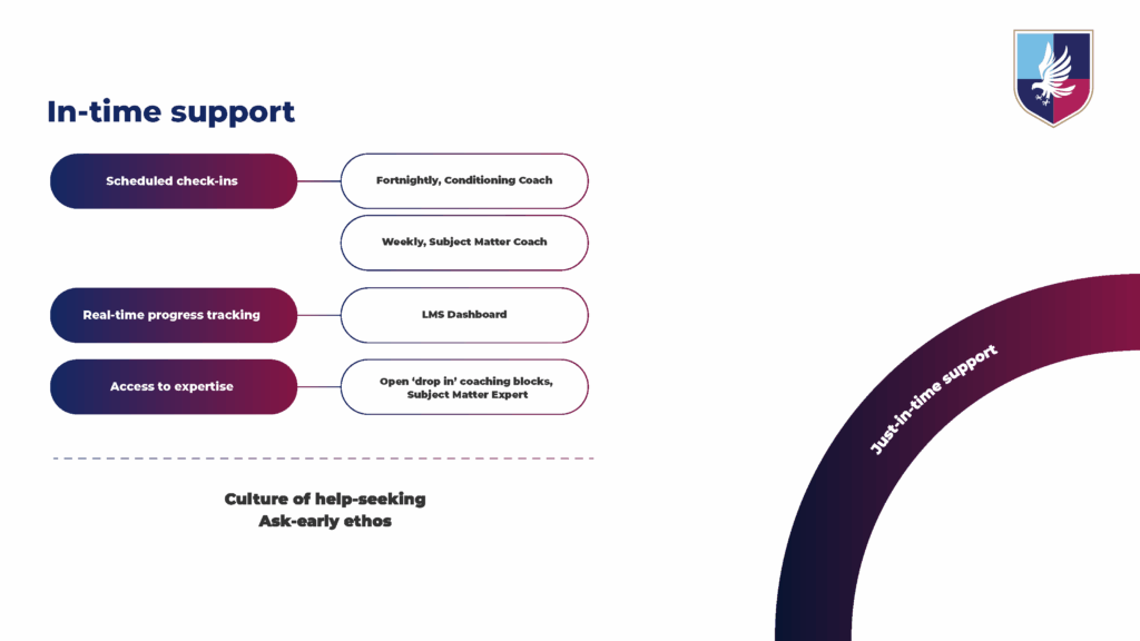 Central to our approach is ensuring students can access the right guidance at the right time. Regular and timely check-ins, coaching and feedback means support is responsive, but not restrictive.